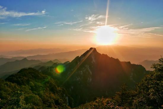 和老君山金顶遥遥相望的玉皇顶也属于白云山,顶上的这方玉皇阁是许多人看日出最爱来的地方。