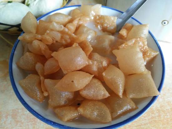 空心的果子酥脆,加了胡椒的咸口油茶醇厚,拌匀以后一口下肚,哦!这该死的高油高糖带来的满足感!